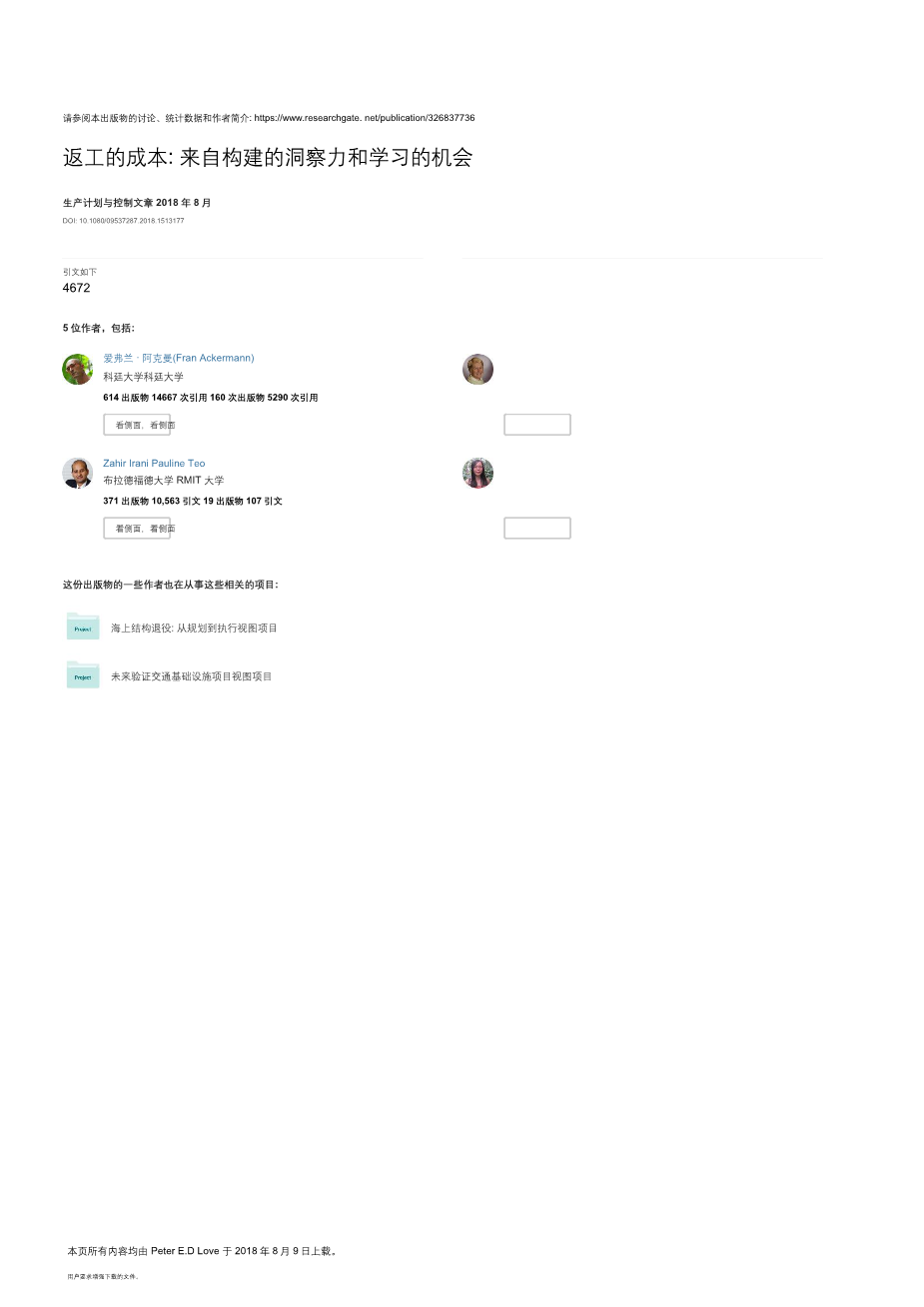 返工的成本:来自构建的洞察力和学习的机会外文翻译资料