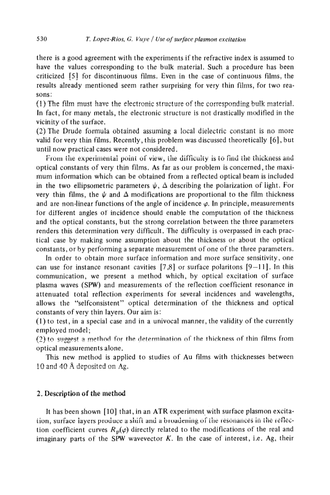 这种新的方法可以应用于测量沉积在银上的厚度为10-40Aring;的金薄膜。