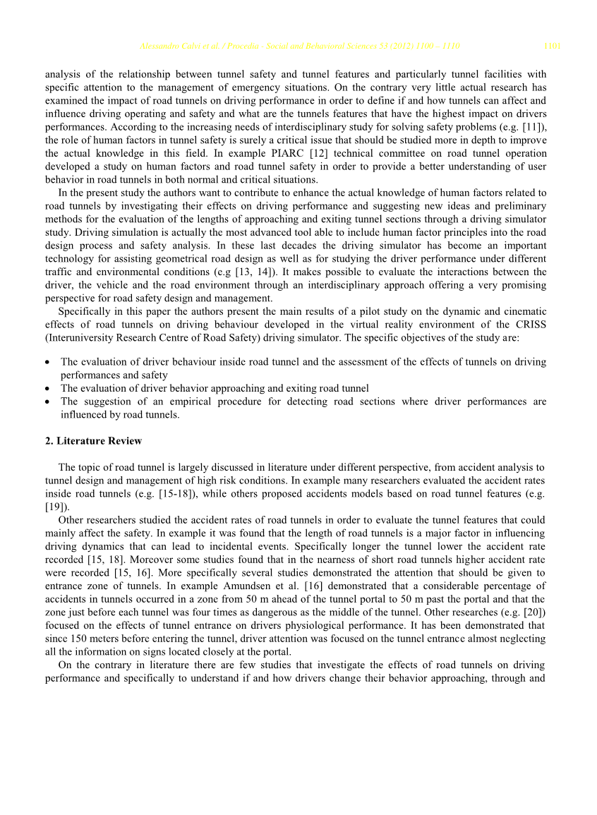 在本作中,作者希望提高对与公路隧道有关的人为因素的认知,通过调查公路隧道对驾驶行为的影响、提出新的思路并且通过驾驶模拟研究以初步建立隧道进出口部分长度的评价。驾驶模拟是目前最先进的一种工具,它能够对人为因素的各种原则进行界定并将之应用到公路设计过程与安全分析中。在近几十年的研究中,驾驶模拟已经成为辅助道路几何线形设计以及在不同交通环境条件下研究驾驶行为中的一种十分重要的科技(例如[13,14])。它使得研究驾驶人、车辆和路面环境之间的关系成为可能,从一种跨学科的手段为道路安全设计与管理提供一种非常有前景的角度。