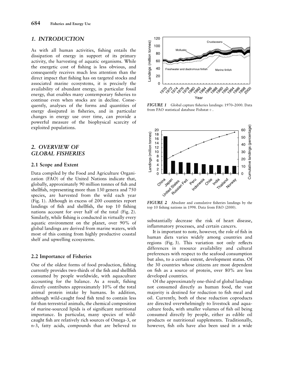 从能量的角度来说,捕鱼是各种各样文化媒介能量形式被分散,从而在鱼和甲壳类动物体内捕捉可食用化学能的过程。在收获的生物的体内蕴涵的化学能量和大多数形式的文化媒介能量就是源于太阳,这一最终的来源。随之而来的是,维持渔业活动和全球鱼获物上市量所需的太阳能是巨大的。但是,迄今为止,很少有渔业相关的能量分析被系统地尝试去解释太阳能输入。因此,太阳能输入不是本文回顾的焦点,而是对生态系统维护---全球渔业捕获量的增长开展简短的讨论。相反,这项工作主要涉及在渔业活动中,文化媒介能量输入的主要形式和数量。