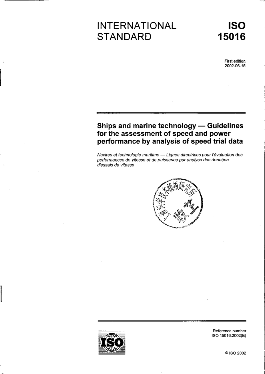 在本国际标准中规定的程序在很大程度上得到了出版速度试验数据的基础上,船舶的性能,更重要的是规范性附录A中列出的F.