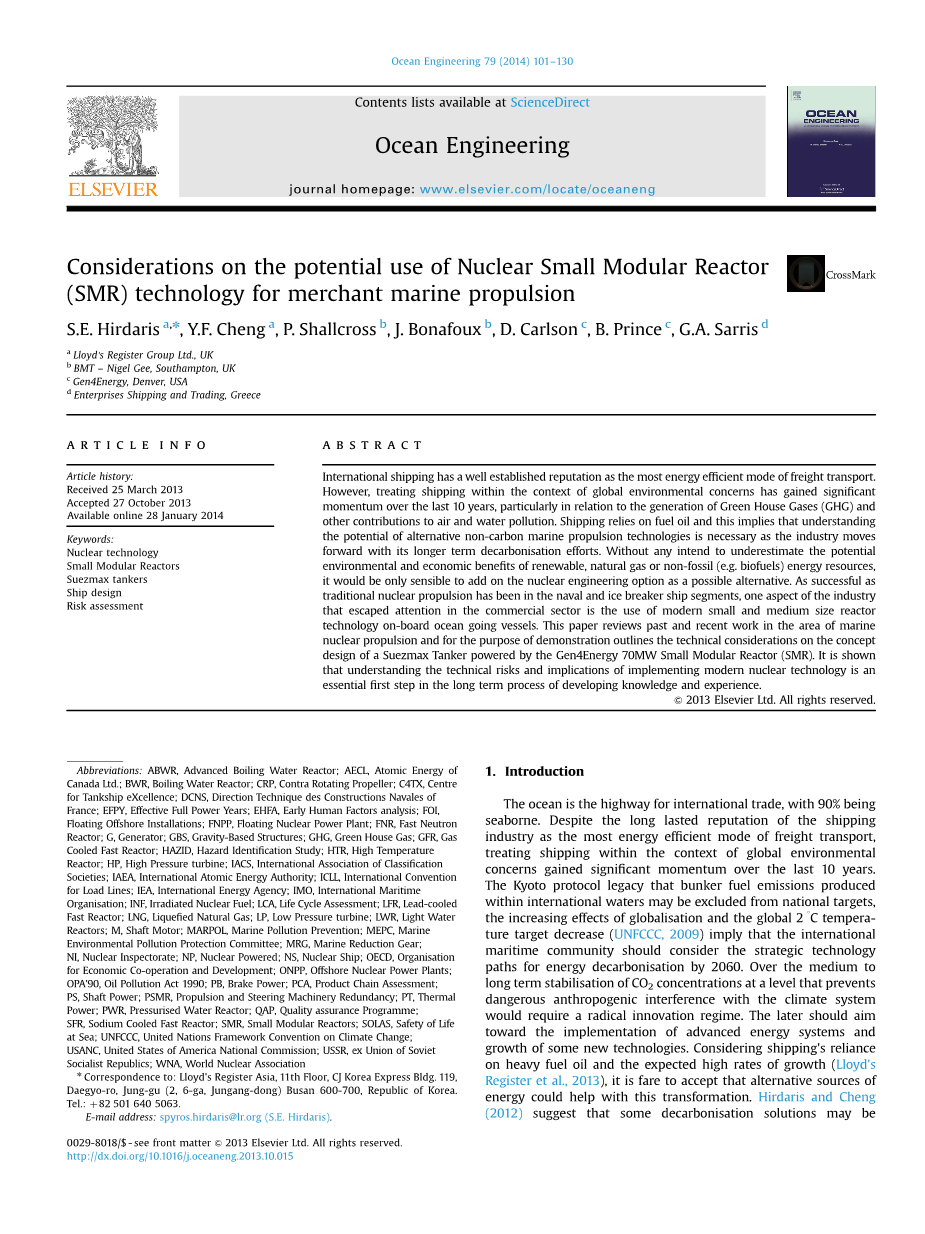 it is estimated that the western world, primarily led by the USA Naval sector, has to date accumulated over 6200 reactor-years of operational experience involving 526 nuclear reactor cores (WNA, 2012). Despite the successful implementation of traditional nuclear reactor options one aspect that escaped the attention of the commercial industry sector is the use of Small Modular Reactor (SMR) technology onboard ocean going vessels. |