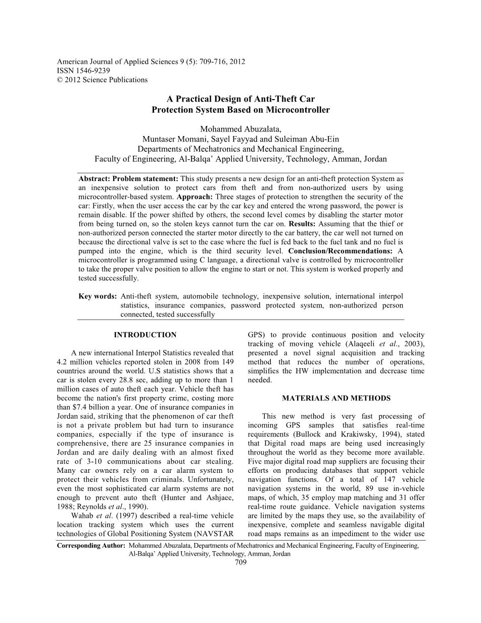 关键词:防盗系统,自动化技术,廉价解决措施,国际刑警组织数据统计,保险公司,密码保护系统,非授权用户连接,测试成功