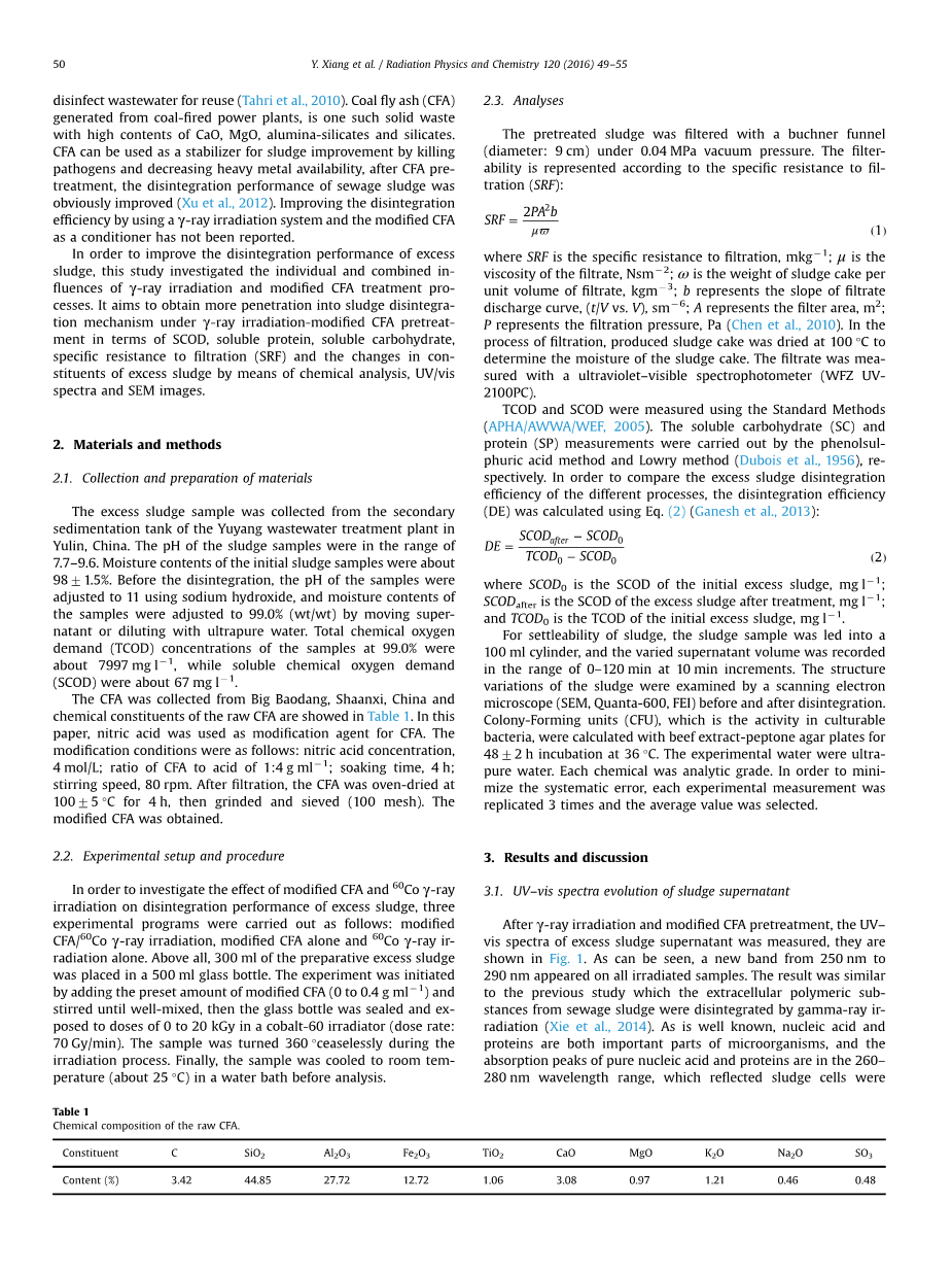 采用gamma;射线及改性粉煤灰(CFA)联合处理方法提高污泥破解性能