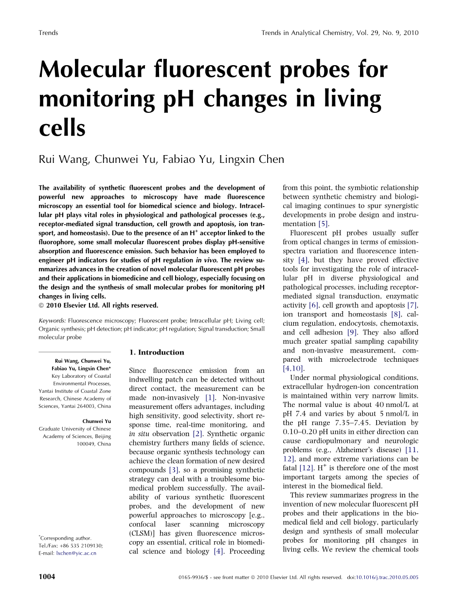 关键词:荧光显微镜技术;荧光探针;细胞内pH;活细胞;有机合成;pH检测;pH指示剂;pH规律;信号传递;小分子探针