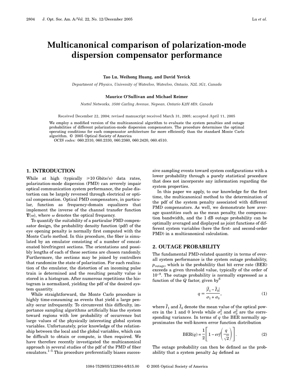虽然简单,蒙特卡罗程序高度耗时作为产生大量焦点事件很少发生。为了克服这个困难,重要性采样算法人为地偏置系统对低概率发生,但区身体有趣的全球系统的较大值变量。不幸的是,这种关系的先验知识之间的局部和全局变量,这可以难以获得或计算,然后需要。我们因此,最近调查了多正在光纤的PMD的PDF格式的一些研究方法emulators.1-5此过程优先连续偏置朝向与系统配置抽样事件通过纯粹统计程序概率较低不包括有关的任何信息系统属性。在本文中,我们应用,据我们所知,第一个时,多正方法的测定该系统点球不同相关的PDF格式PMD补偿。同时,我们将演示如何平均量,如均值惩罚,补偿带宽,和1分贝中断概率可以是最佳平均并作为不同的关节功能显示系统变量(这里的第一和第二阶PMD)在多正计算。