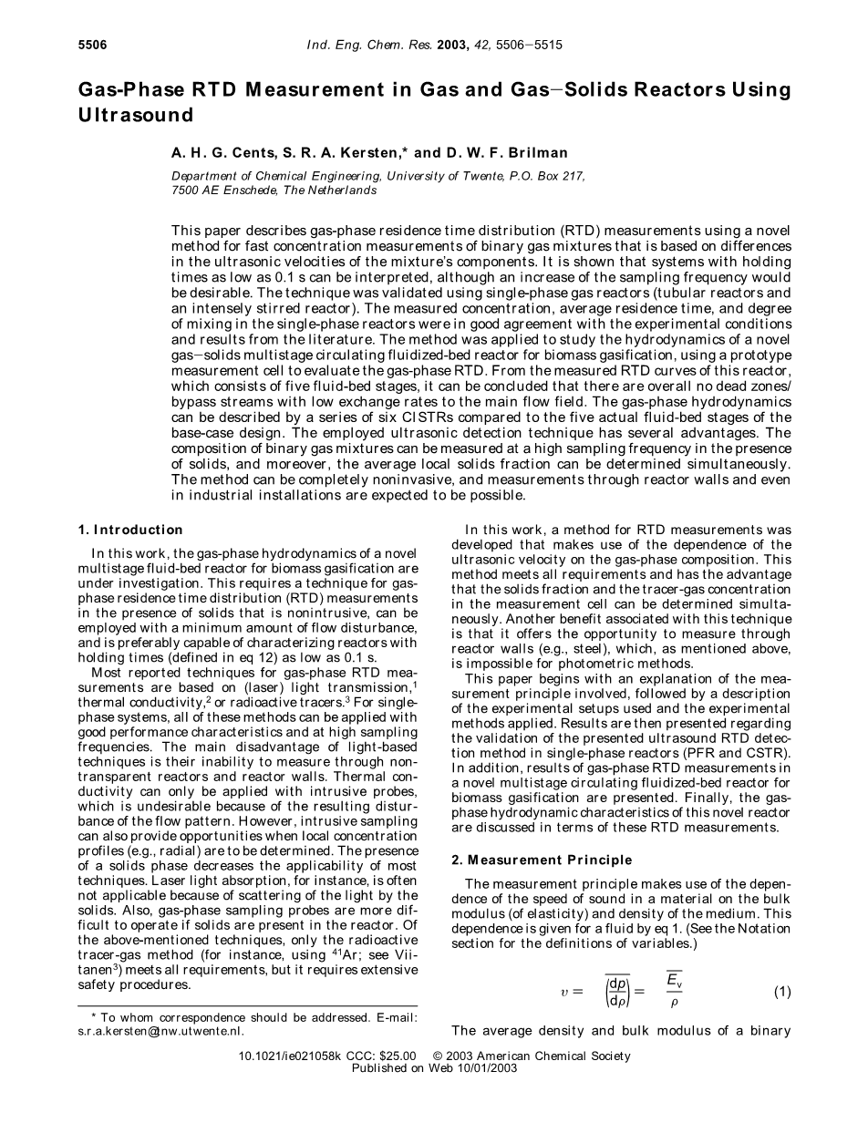 在这项工作中,一个RTD测量方法的开发是利用超声波的速度对气相成分之间独立的关系。该方法能满足所有的要求,具有的优势是固体部分和测量单元中的示踪气体浓度可被同时确定。与此技术相关的另一个好处是,它提供了通过反应器壁的措施(如钢铁)的可能性,正如上面提到的,这是分光光度法所不可能的。