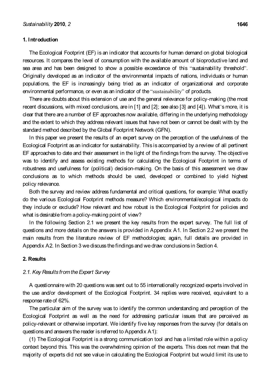 20题的调查问卷发给了55名参与生态足迹的使用或开发国际公认的专家。共收到34篇,相当于62%的回应率。