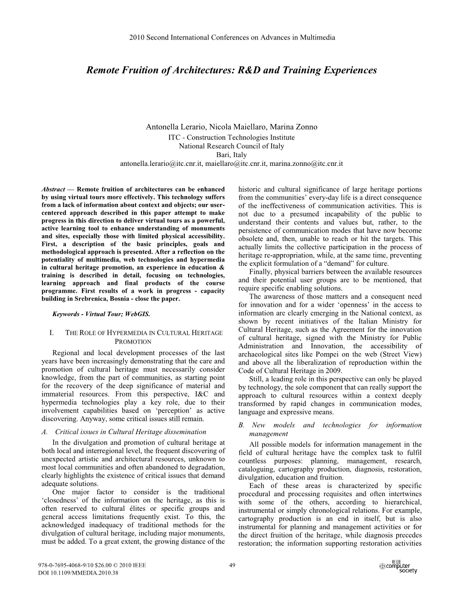 itc.cnr.it antonella.lerario @ @ @,maiellaro itc.cnr.it,marina.zonno itc.cnr.it