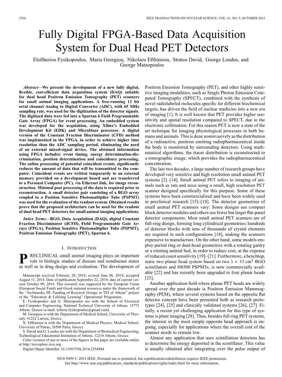 关键字: BGO;DAQ;数字化恒定系数鉴别器(dCFD);FPGA;PSPMT;PET;Spartan 6