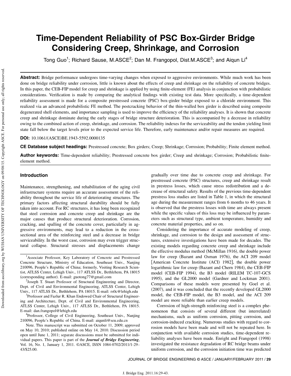Tong Guo; Richard Sause, M.ASCE; Dan M. Frangopol, Dist.M.ASCE; and Aiqun Li
