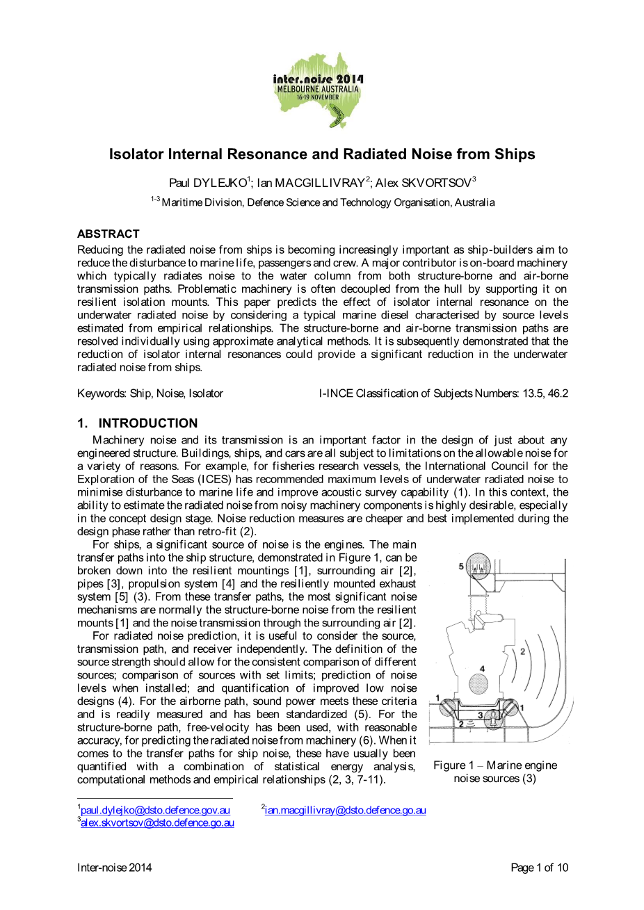 隔振器内部共振的出现增加了能量传递和由此产生结构辐射噪声。本文的重点是探讨相对的振动隔振器内部的重要性在船舶水下噪声辐射共振。一个案例研究典型船用柴油机的特点是其声功率和自由速度从经验关系。排气噪声并不认为,因为这通常是辐射水。因此,大阻抗失配导致空气与边界可以忽略不计比例的排气噪声传播到水柱。