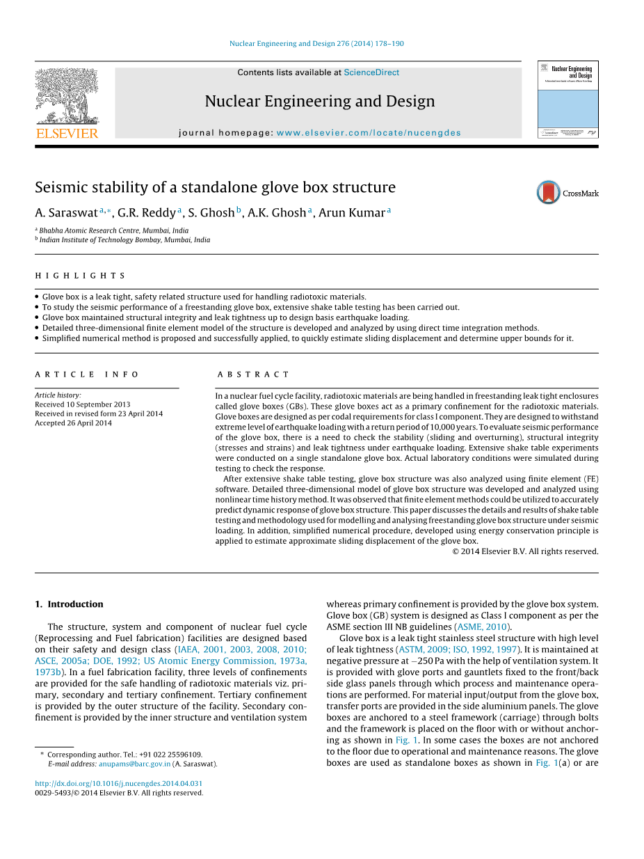 - Saraswat a,lowast; , G.R. Reddy a ,S. Ghosh b , A.K. Ghosh a , Arun Kumar a