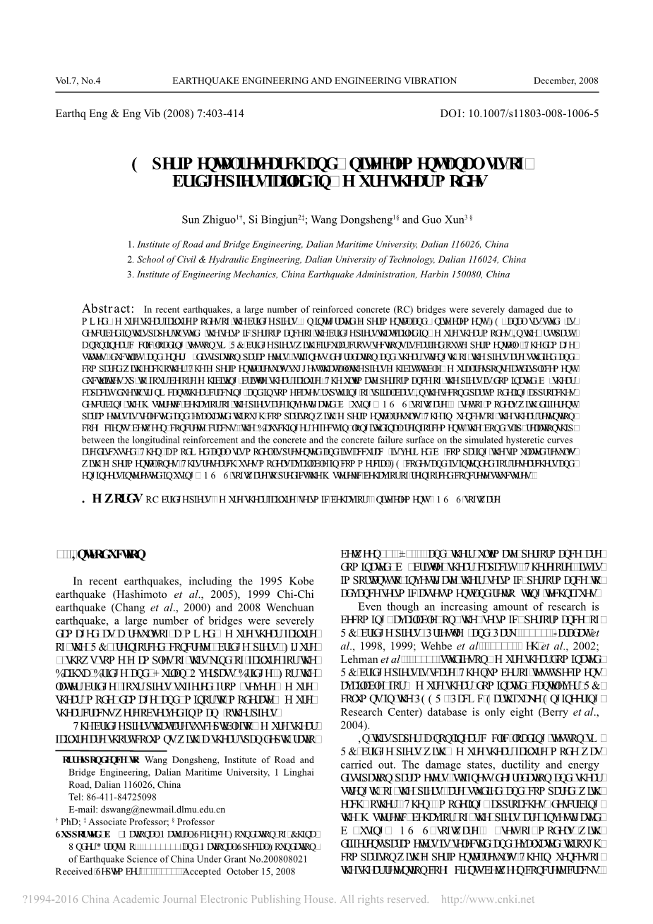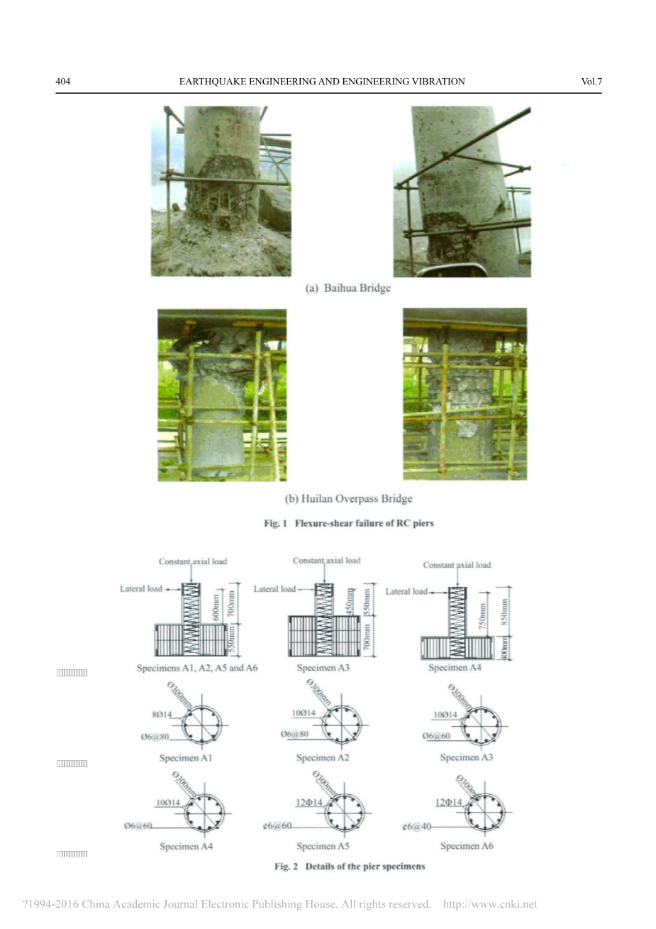 在最近发生的地震,包括1995年神户大地震(桥本等作者.,2005),1999集集大地震(常等作者.,2000),2008年汶川地震,由于钢筋混凝土桥墩混合弯曲剪切破坏的结果,大量的桥梁受到严重破坏。图1显示了一些这类的百花大桥和回澜立交桥失败的例子。对于后者的桥,四个桥墩遭受严重破坏弯剪模式和轻微至中等程度的弯剪裂缝在许多其他桥墩观察。