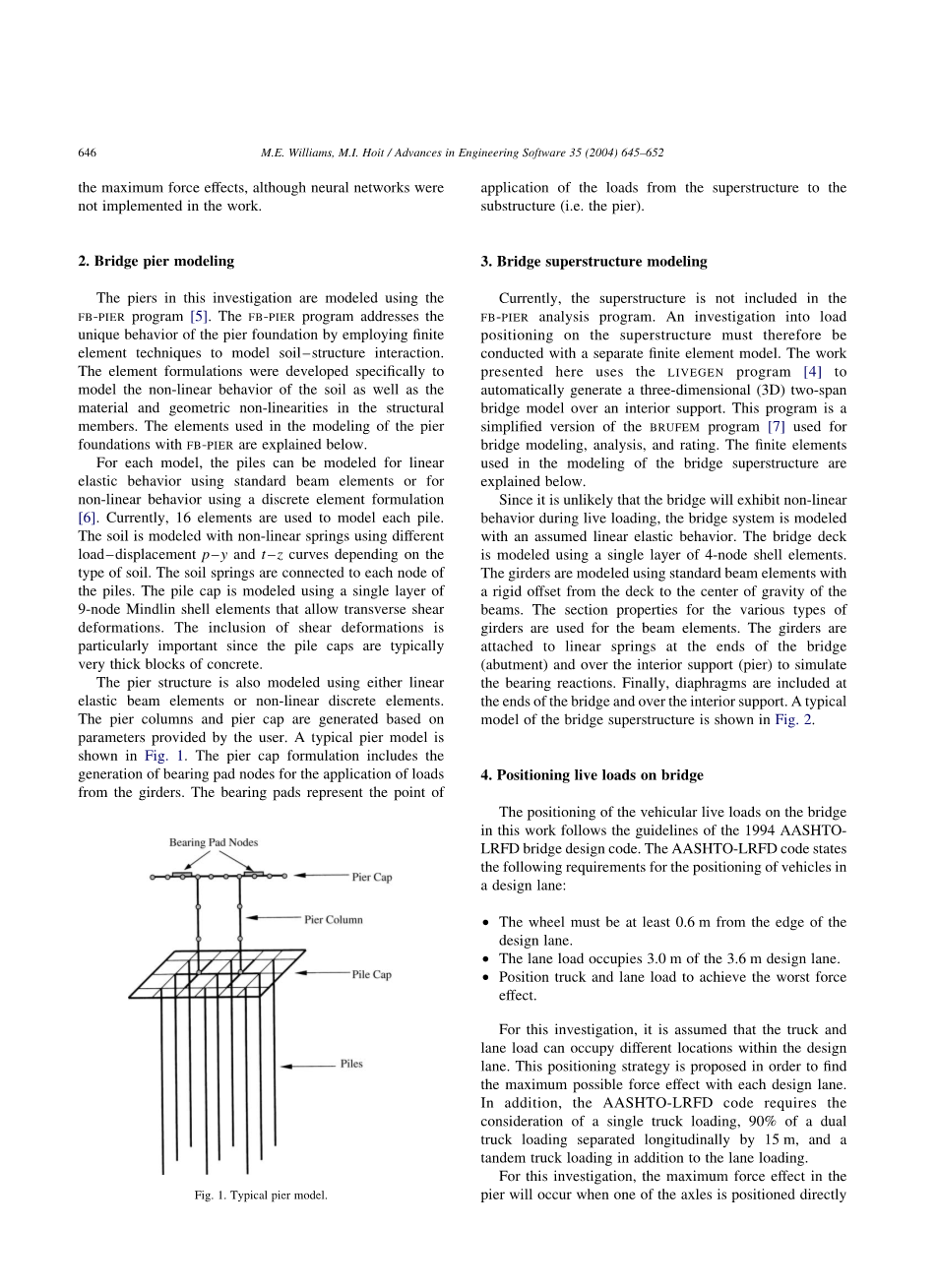这项工作实现神经网络预测加载放置,以产生最大的力效应码头。这是通过分析许多不同的码头所有可能的负载组合,并确定最坏的负载情况。这涉及到计算的几个阶段。首先,所有可能的负载情况下为每个桥在内部产生和轴承垫反应每一个负载情况下的支持。轴承垫每个负载情况下的反应,然后应用到码头在一个码头FB-PIER模型进行分析。产生最坏力组合的负荷情况码头被记录。神经网络,然后训练学习负载定位之间的关系。产生最大力量效应的桥梁和案例在码头。神经网络的简要说明如下在进行桥梁墩的应用前。