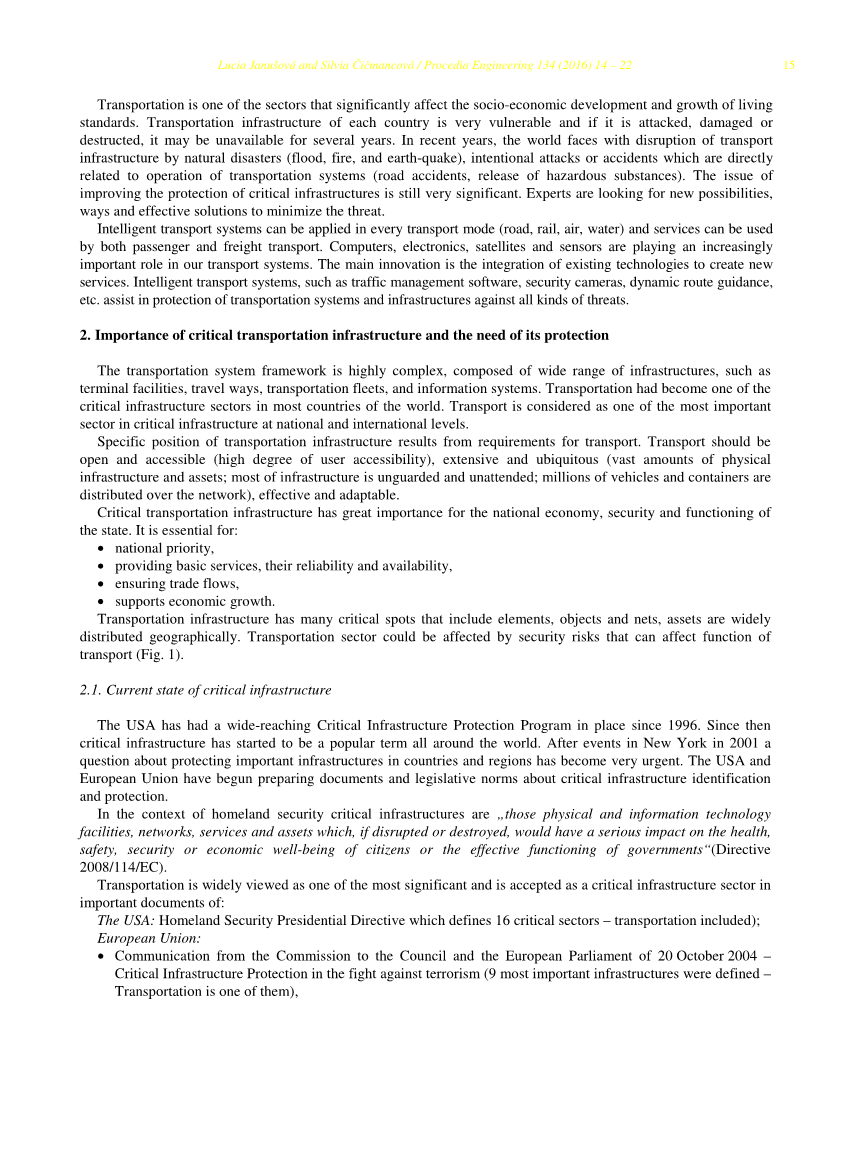 Transportation is widely viewed as one of the most significant and is accepted as a critical infrastructure sector in important documents of:
