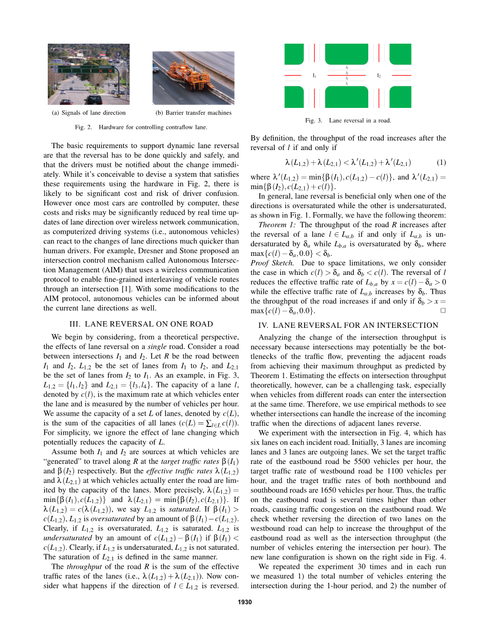 本文的其余部分组成如下:在第二节,我们讨论了实施动态可变车道方案所需的硬件;在第三节和第四节,我们分析在什么条件下动态可变车道才有益于个别路段和交叉口;在第五、第六节,我们介绍了宏观ILP交通流模型和双层规划,并探讨通过动态重新分配车道带来的性能提升。