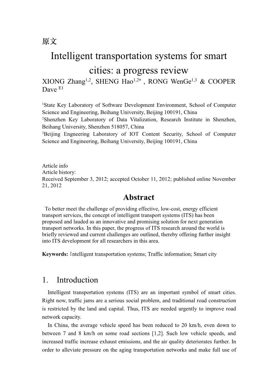 在中国,平均车速已降低到20公里/小时,甚至在一些路段下降到7和8公里/小时之间[1,2]。如此低的车辆速度,和增加的交通废气排放量,以及空气质量进一步恶化。为了缓解老化的运输网络的压力,充分利用现有的资源,政府正努力投入更多的研究和建设。