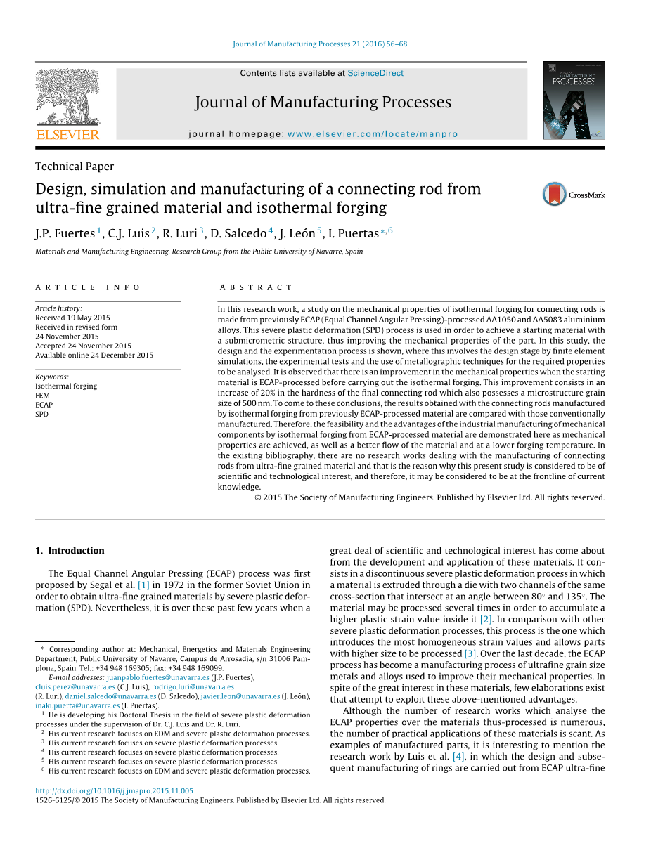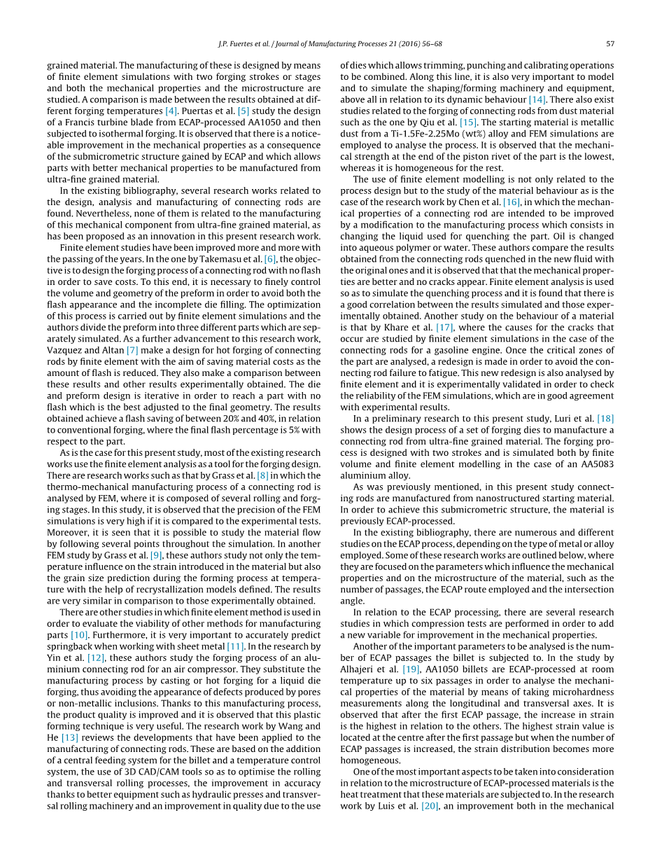 一旦获得一个已被证明的纳米结构的单块连接杆的设计过程中的模具和预制件,它的制造是现在解决由一系列计划的实验测试,以分析其方法的改进,这可能涉及相关方法的提出。正如前面提到的,目前,没有任何研究表明,用超细晶材料制造连接杆的相关方法,因此,本研究关注的是通过等温锻造并且从ECAP(等通道角挤压)制造纳米AA1050 AA5083铝合金连杆。