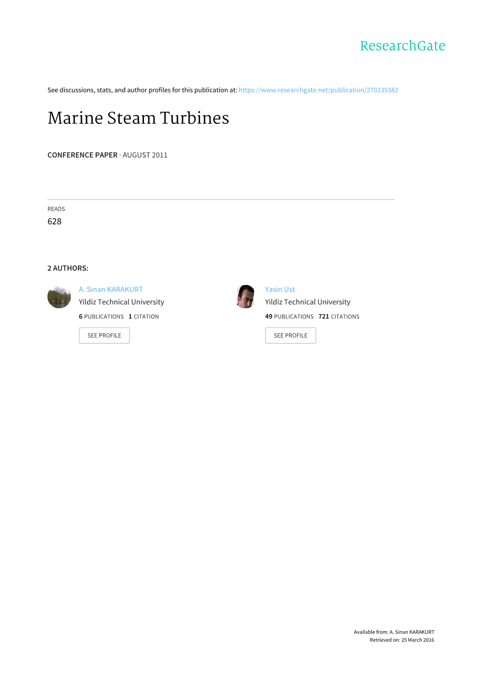 船舶和海洋工程系,YıLDıZ技术大学土耳其,asinan@yildiz.edu.tr,