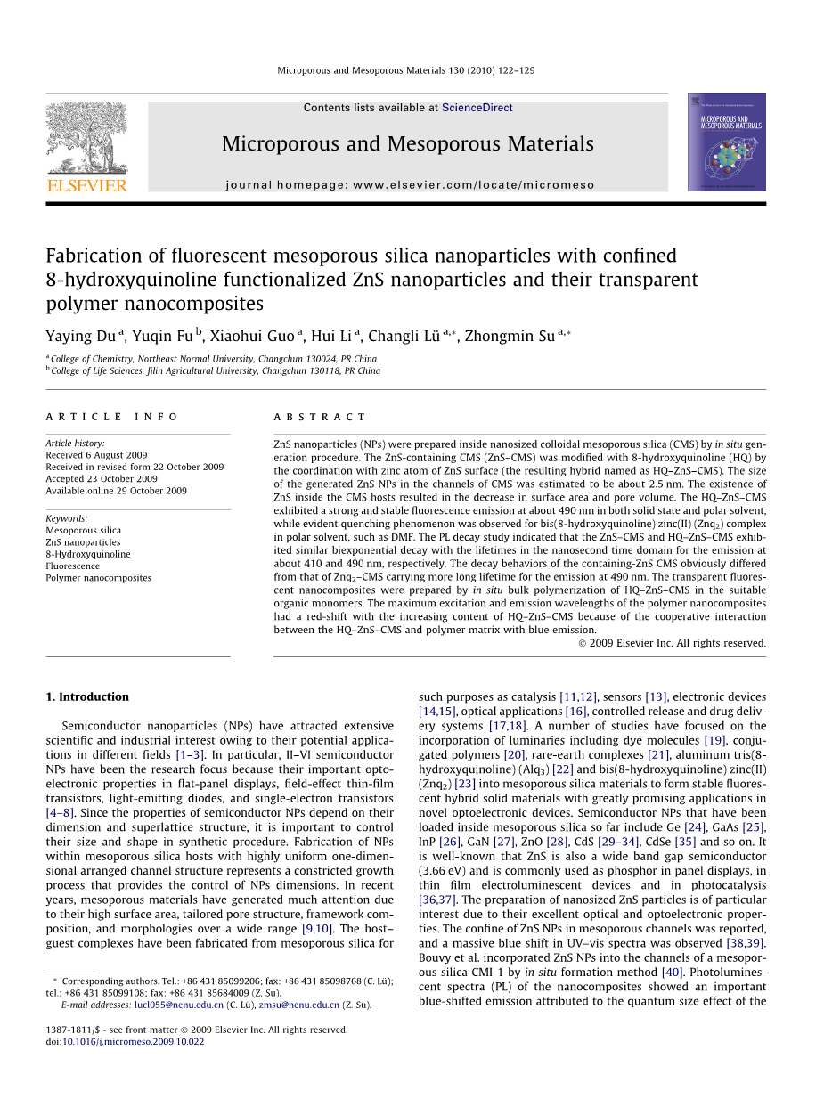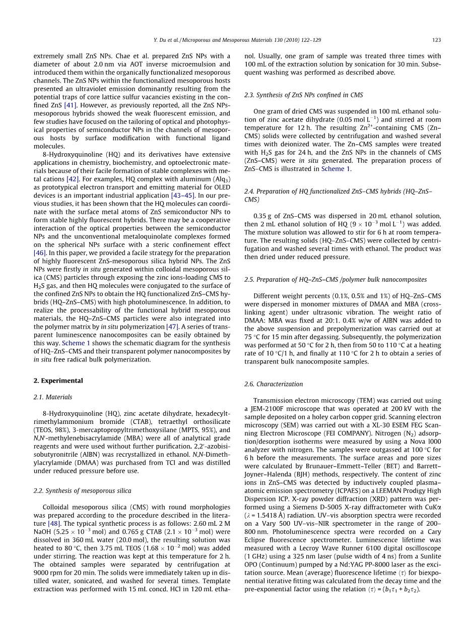 荧光介孔二氧化硅纳米粒子的制备受限于8-羟基喹啉功能化的ZnS纳米粒子及其透明聚合物纳米复合材料