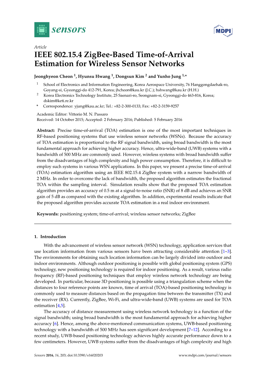 ① 电子与信息工程学院,韩国航空航天大学,杭钢大学路76号,高阳市,京畿道412-791,韩国; jhcheon@kau.kr(J.C.); hshwang@kau.kr(H.H.)