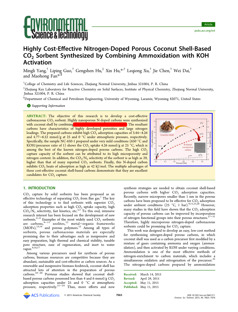 极具性价比的以椰子壳为基础并结合KOH活化氨氧化合成N掺杂多孔CO2吸附剂