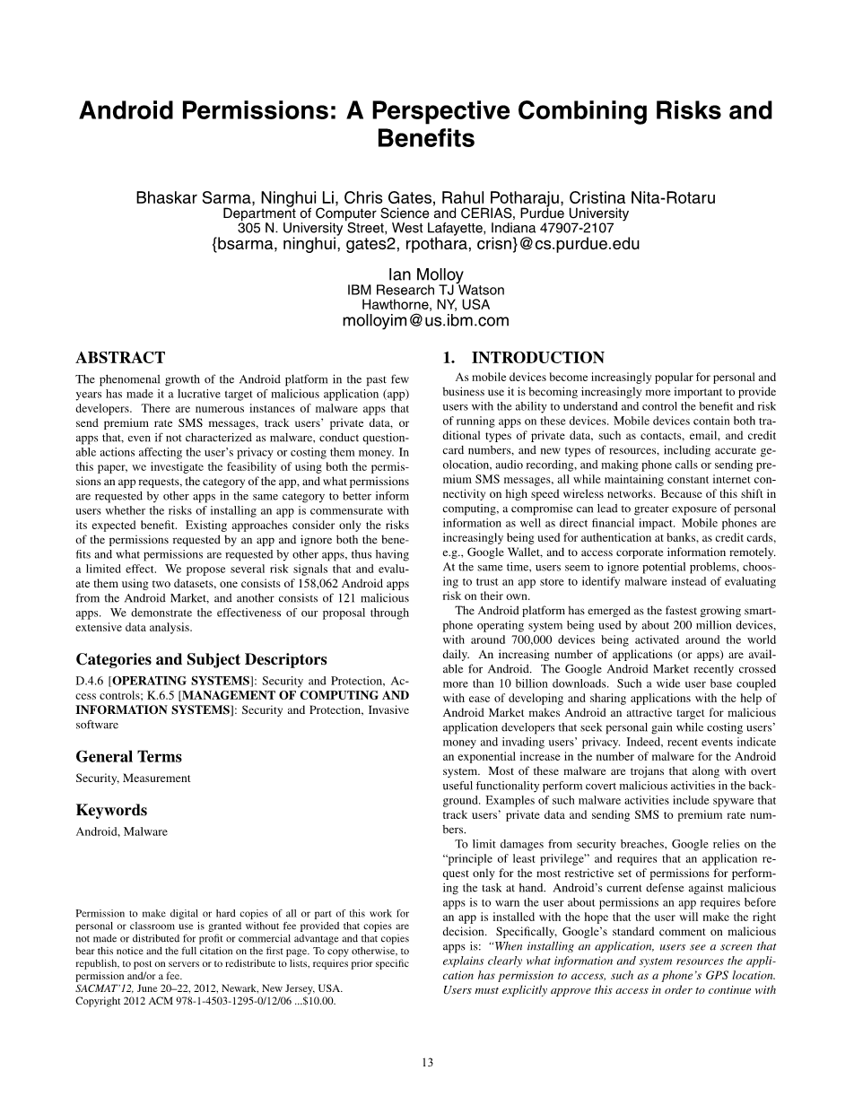 Bhaskar Sarma, Ninghui Li, Chris Gates, Rahul Potharaju, Cristina Nita-Rotaru