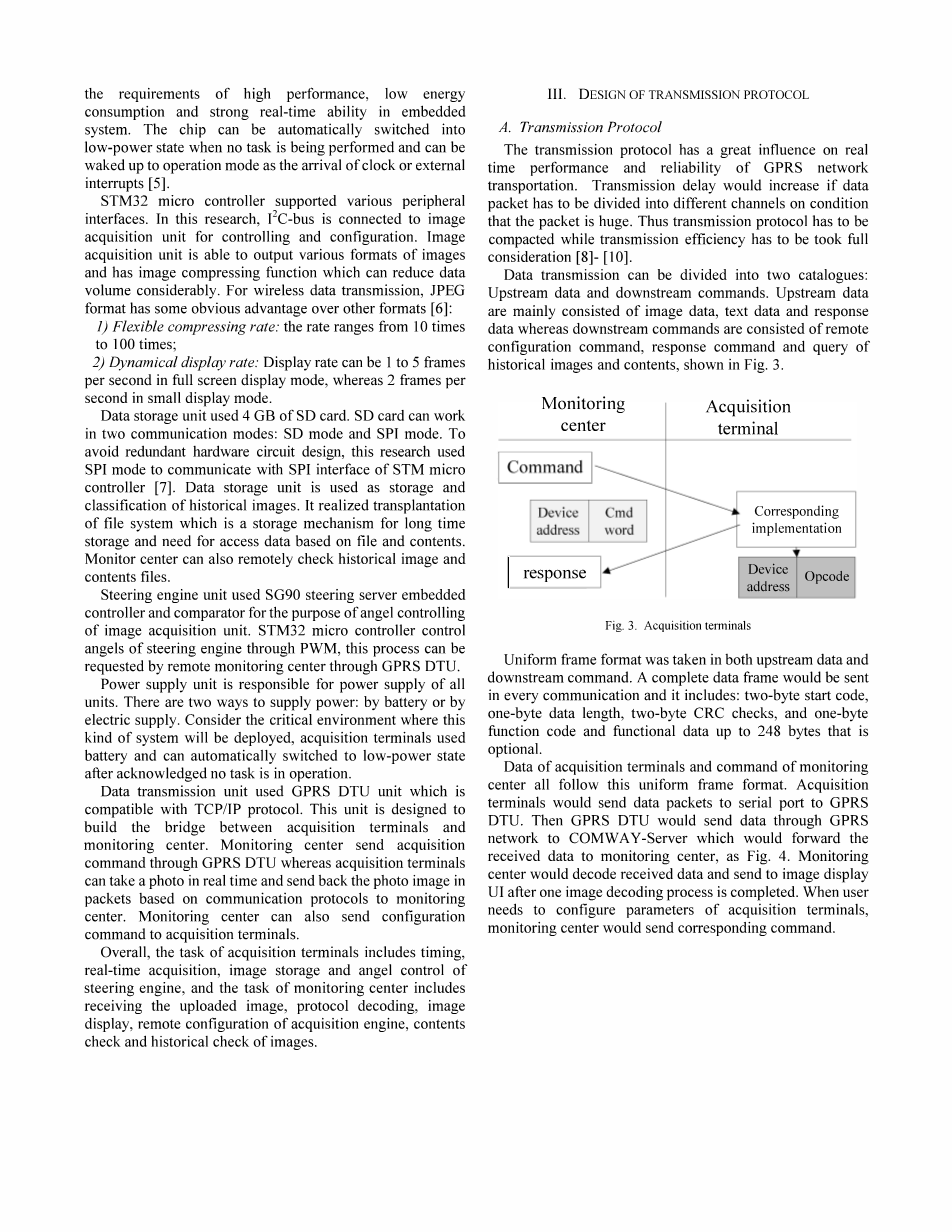 数据传输可以分为两个目录:上游数据和下游命令。上游的数据主要包括图像数据,文本数据和响应数据,而下游的命令是由远程配置命令,响应命令和历史图像和内容查询组成的,如图3。