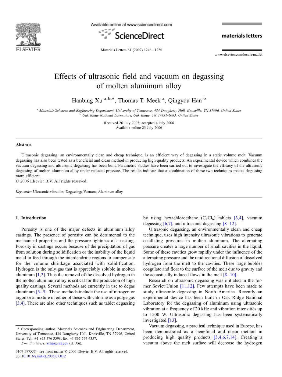Hanbing Xu a,b, , Thomas T. Meek a, Qingyou Han b