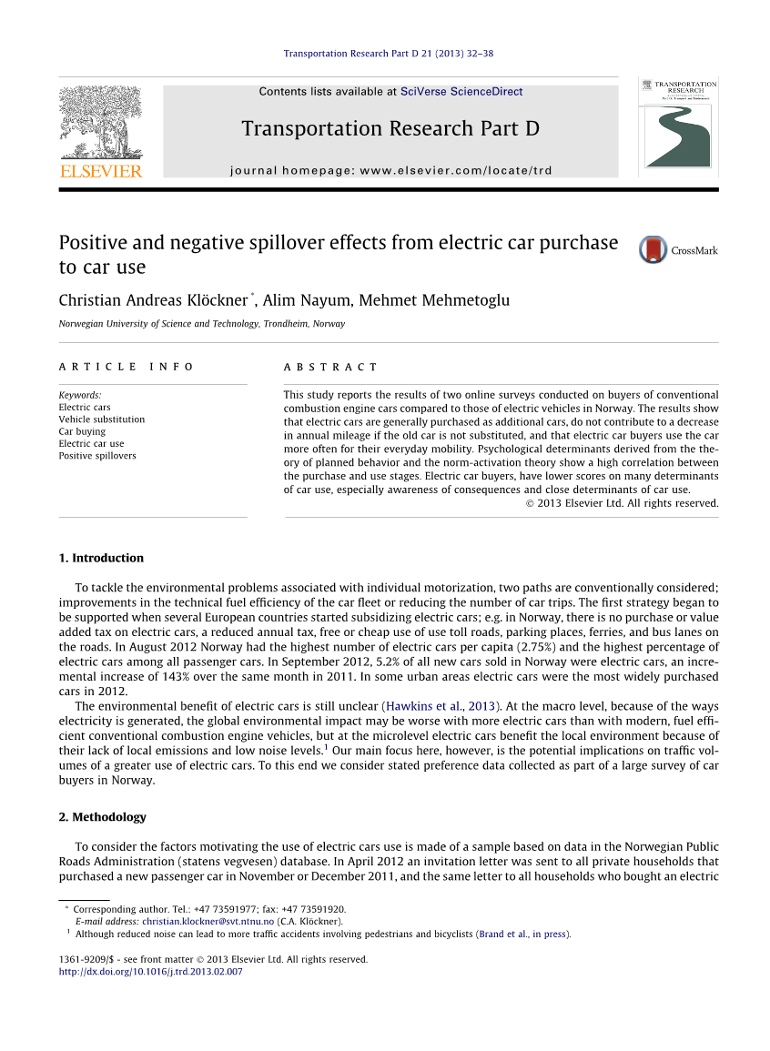 为解决与个体机动化有关的环境问题,研究人员经常考虑两个路径;改进车辆的燃油经济性和减少汽车行程次数。第一批战略开始时,几个欧洲国家开始补贴电动汽车; 如在挪威,那里是没有购买税或电动汽车增值税,政府减少每年的税费,电动车被允许免费或廉价使用收费道路、 停车位、 渡轮,甚至被允许行驶在公交专用车道上。2012 年 8 月挪威达到了人均电动汽车(2.75%)占所有乘用车的最高的百分比。在 2012 年 9 月,在挪威出售的所有新汽车的 5.2%是电动汽车,比 2011 年同期增长143%。2012年在一些市区,电动车是销量最好的车型。电动汽车对环境的益处目前尚不明确。在宏观层面,由于目前发电的方式,更多的电动车给全球环境带来的负面影响,可能反而多于当现代的更高效的燃油汽车。但在微观水平,电动汽车对当地环境的益处在于,它们的排放更低,噪音更小。而我们现在的主要重点是如果电动汽车在各种路段上使用率都大量上升后可能对环境产生的影响。为此,我们考虑选取挪威大量调查中的部分数据进行分析。