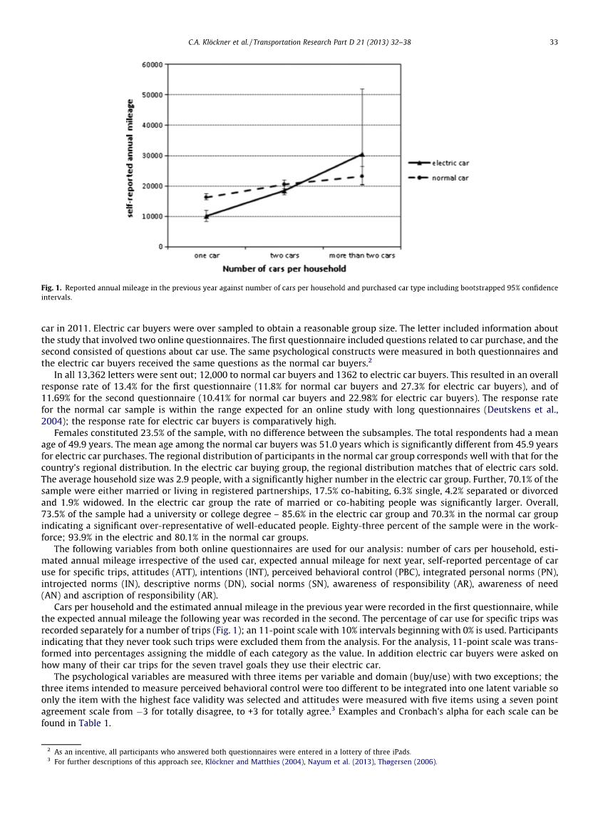 购买的车型和认知结果以及融合标准之间显著的负面影响表明一致性是十分显著的影响。信件表明,买了电动汽车的车主有着与他们买大尺寸汽车的内疚感和使用汽车的愧疚感更弱的关系,这又可以被Thoslash;gersen and Noblet (2012)所解释,人们感到十分愧疚却又对自己减少车辆使用的能力感到无能为力,这时他们往往选择买一台电动汽车。