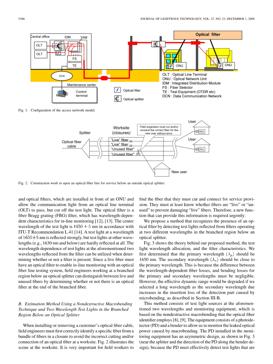 在第二节,我们讨论了PON中在外部光分路器下的,分支光纤区域的光纤确定技术方法的基本概念。第三节解释了理论和详细介绍了我们提出的检测滤光器是否安装了的方法。我们确信我们原型试验的性能。在第四节,我们提出了一个改进型分析方法,它被用来以很高的精度确定在光纤链路的远终端是否有过滤器。我们还证明了即使在分支光学区域有很大的往返光纤损耗,我们的增强型分析方法仍然是有效的。