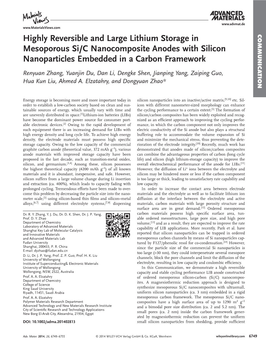 Hua Kun Liu, Ahmed A. Elzatahry, and Dongyuan Zhao*