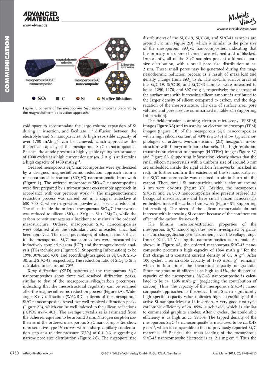综上所述,有序与超小型(约3纳米)介孔Si/ C复合材料纳米颗粒,内嵌在孔碳骨架均匀硅纳米粒子成功地通过一个镁