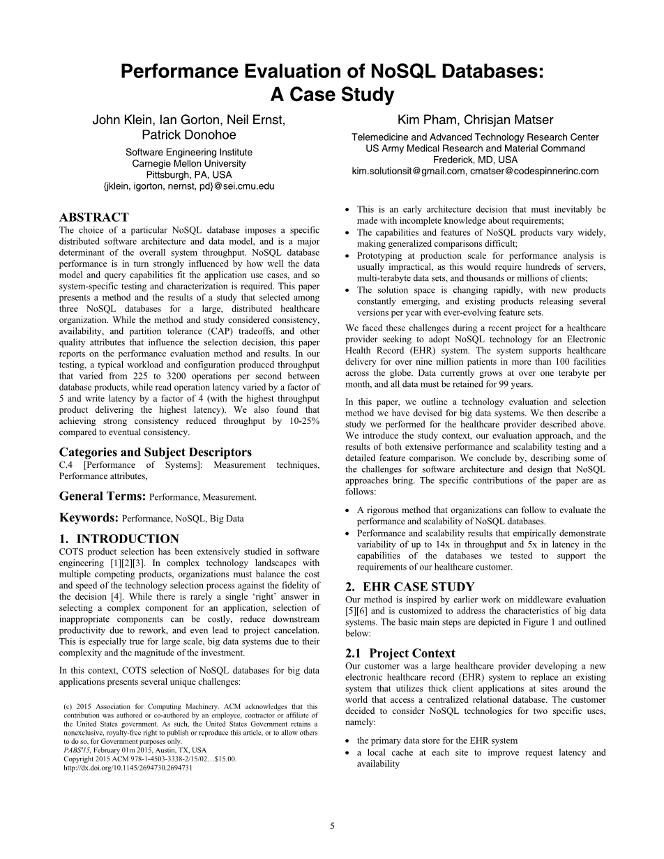 - 性能和可扩展性结果,经验性地证明了在我们测试的数据库的能力支持我们的医疗保健客户的要求的吞吐量高达14倍的可变性和5倍的延迟。