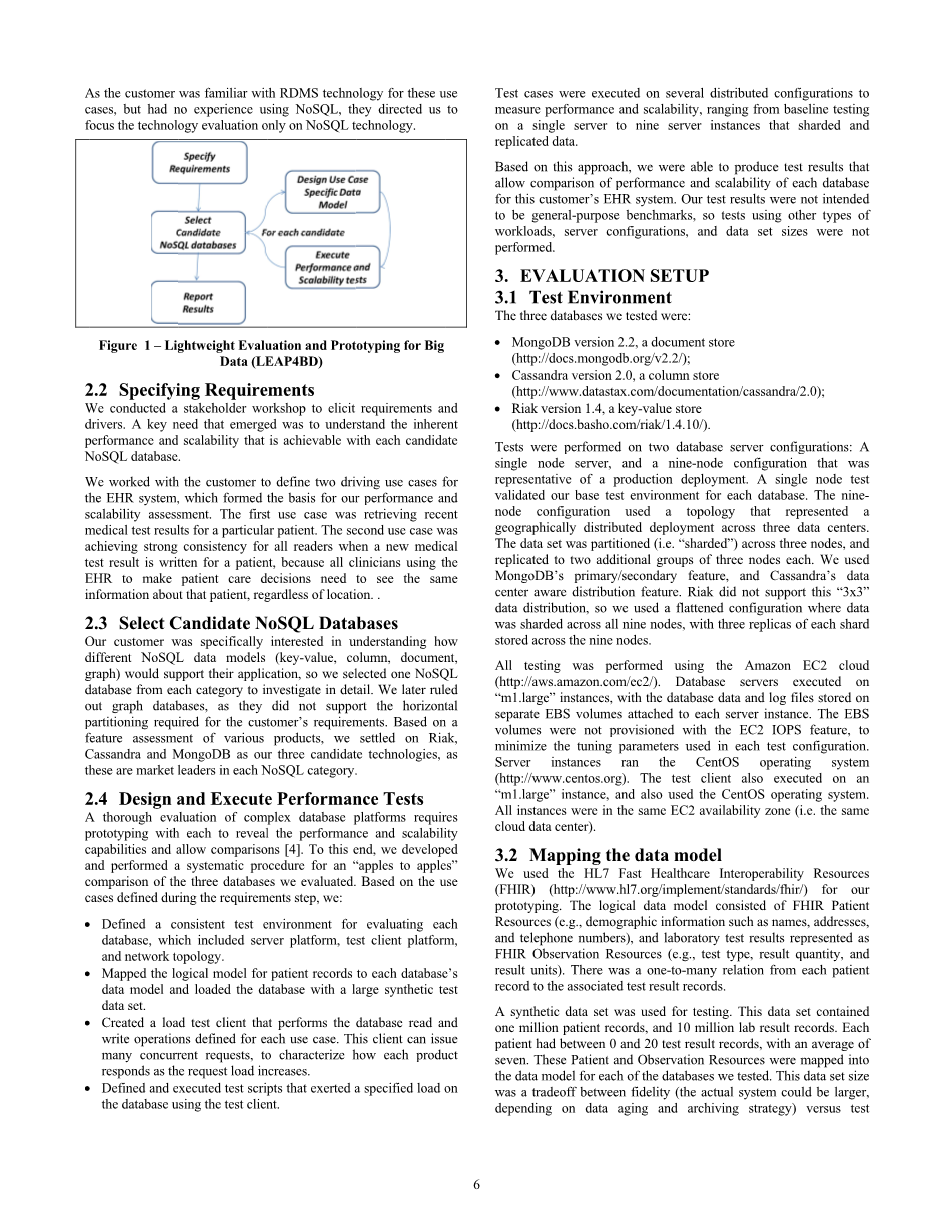 在最近的一个医疗保健提供者的项目中,我们面临着这些挑战,希望采用NoSQL技术进行电子健康记录(EHR)系统。该系统支持全球超过100家设施的900多万患者的医疗保健服务。数据目前每月增长超过1 TB,所有数据必须保留99年。在本文中,我们概述了我们为大数据系统设计的技术评估和选择方法。然后,我们描述我们为上述医疗服务提供者所进行的一项研究。我们介绍研究背景,我们的评估方法,以及广泛的性能和可扩展性测试的结果以及详细的功能比较。我们得出结论,描述了NoSQL方法带来的软件架构和设计的一些挑战。本文的具体贡献如下: