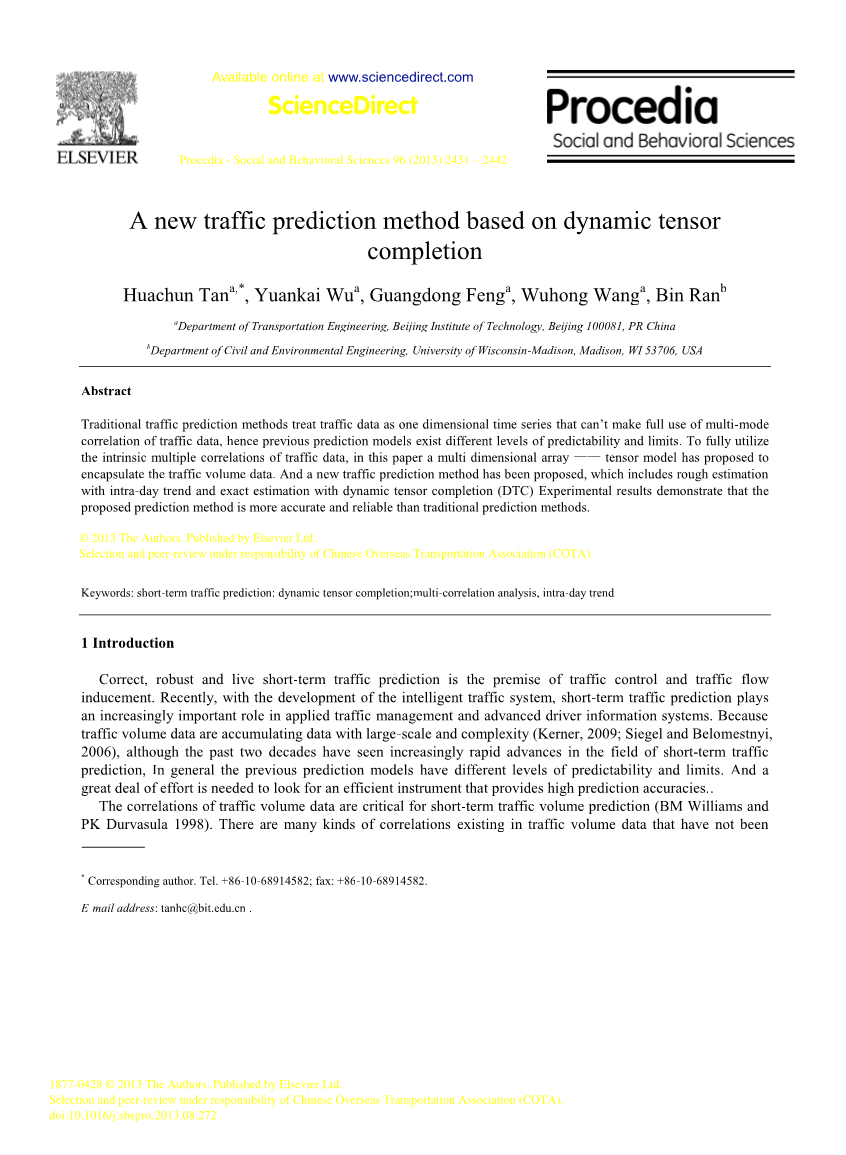 berkeley.edu)来评估所提出的方法的性能。实验结果表明,所提出的基于动态张量完成(DTC)的预测方法比传统的短期流量预测方法更准确可靠。