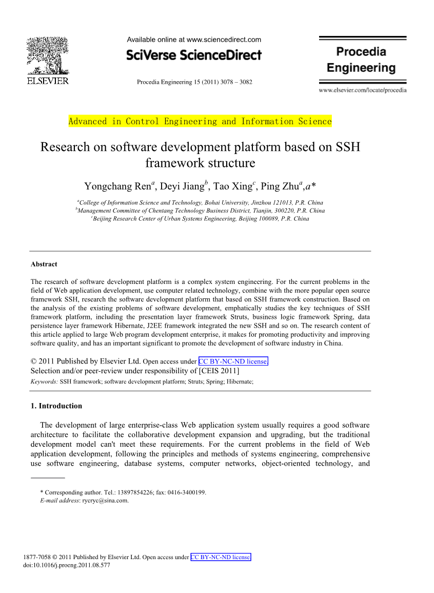 软件开发平台的研究是一个复杂的系统工程。 针对当前Web应用开发领域的问题,采用计算机相关技术,结合更流行的开源框架SSH,研究基于SSH框架构建的软件开发平台。 基于对软件开发存在问题的分析,强调了SSH框架平台的关键技术,包括表示层框架Struts,业务逻辑框架Spring,数据持久层框架Hibernate,J2EE框架集成了新的SSH等。本文的研究内容适用于大型Web程序开发企业,它有助于提高生产力和提高软件质量,对促进中国软件产业的发展具有重要意义。