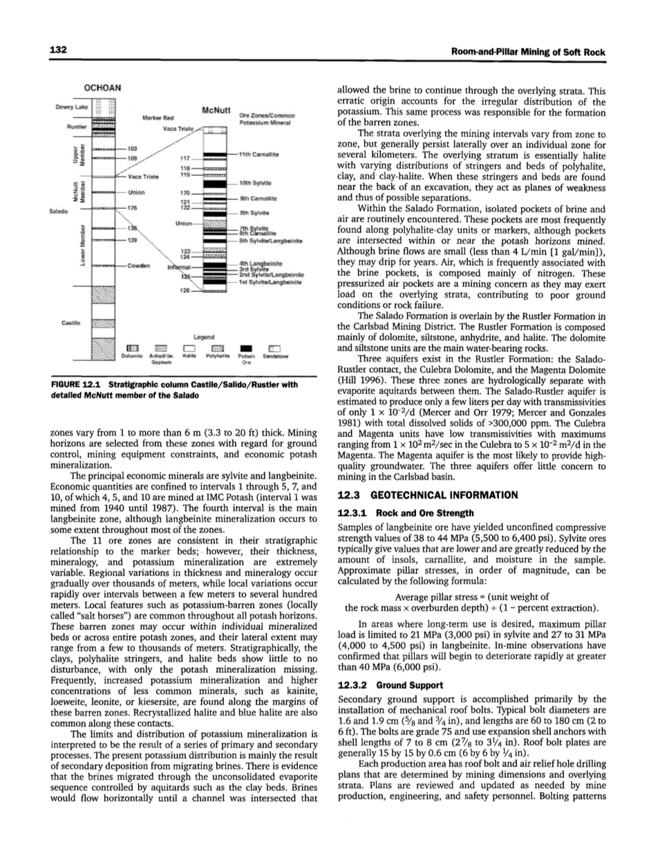 卡尔斯巴德矿区是沉积于新墨西哥东南部和西南部的特拉华盆地中的蒸发岩层的一部分。特拉华盆地上部二叠统矿床的特点是有厚的蒸发岩堆积,蒸发岩从底部到顶部被细分成Castile, Salado, and Rustler地层(图12.1)。这些蒸发岩被埋在标志着二叠纪时代结束的露水湖红层中。