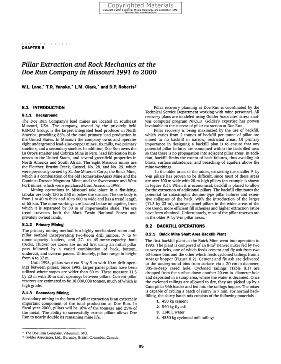1991至2000年密苏里州Doe Run公司在矿柱回采和岩石力学方面的进展