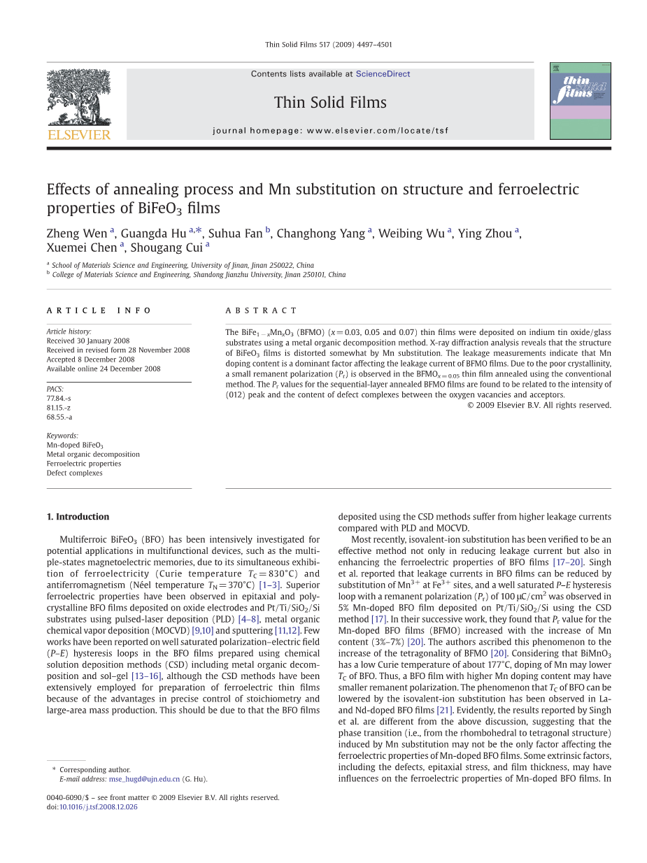 退火工艺和Mn掺杂对BiFeO3薄膜结构及铁电性能的影响研究