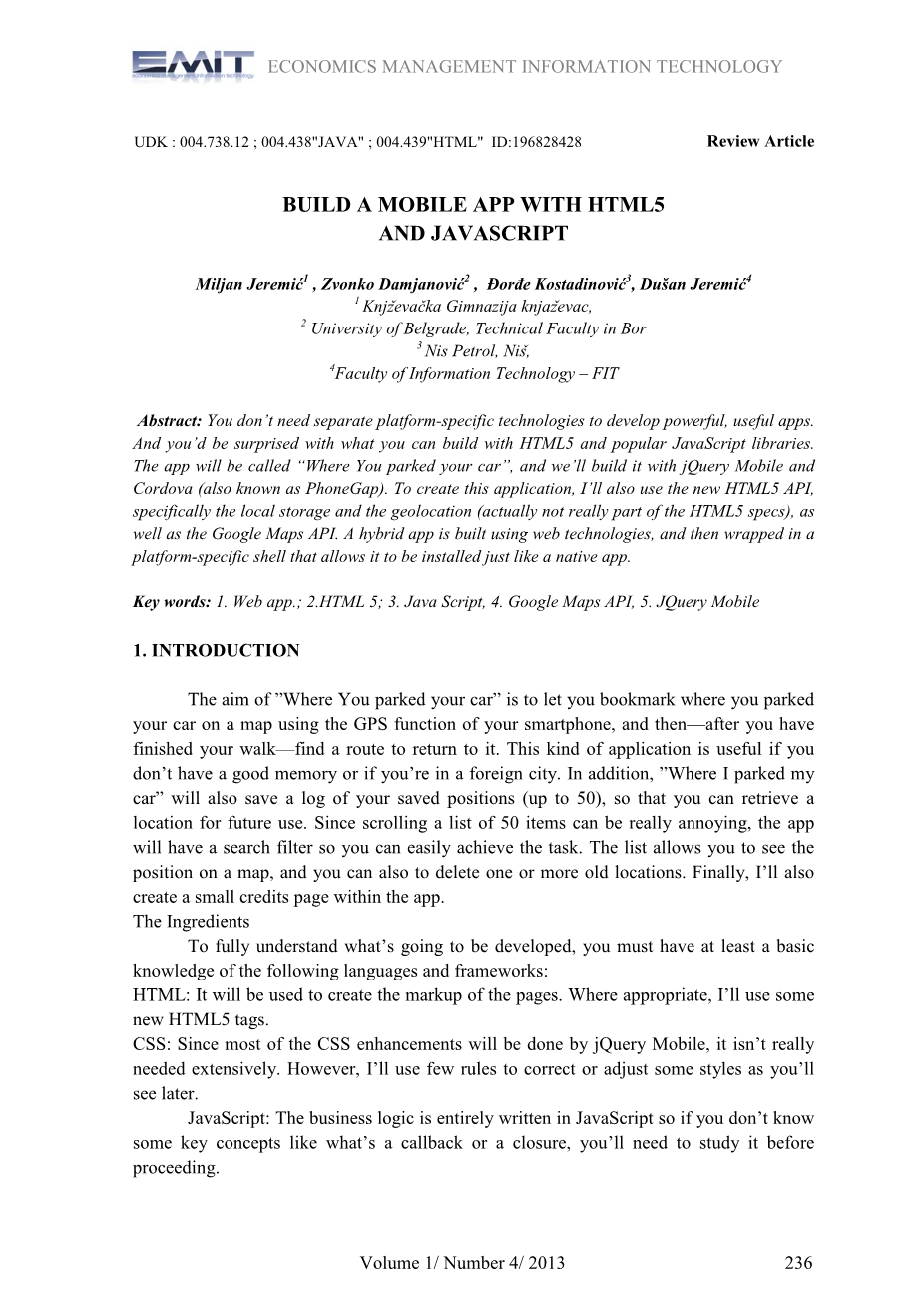 关键词:网页应用;HTML 5; Javascript;谷歌地图 API;JQuery Mobile