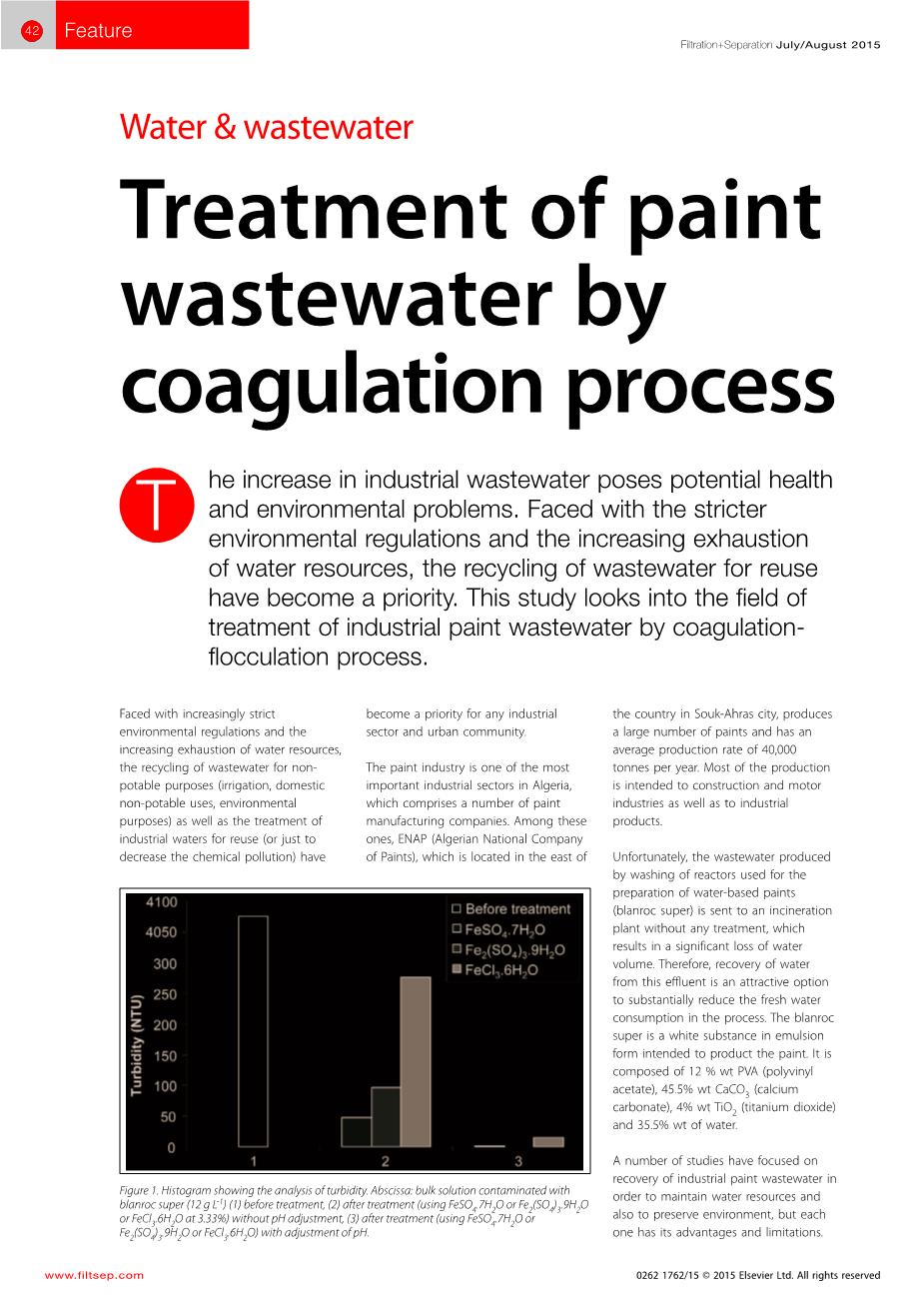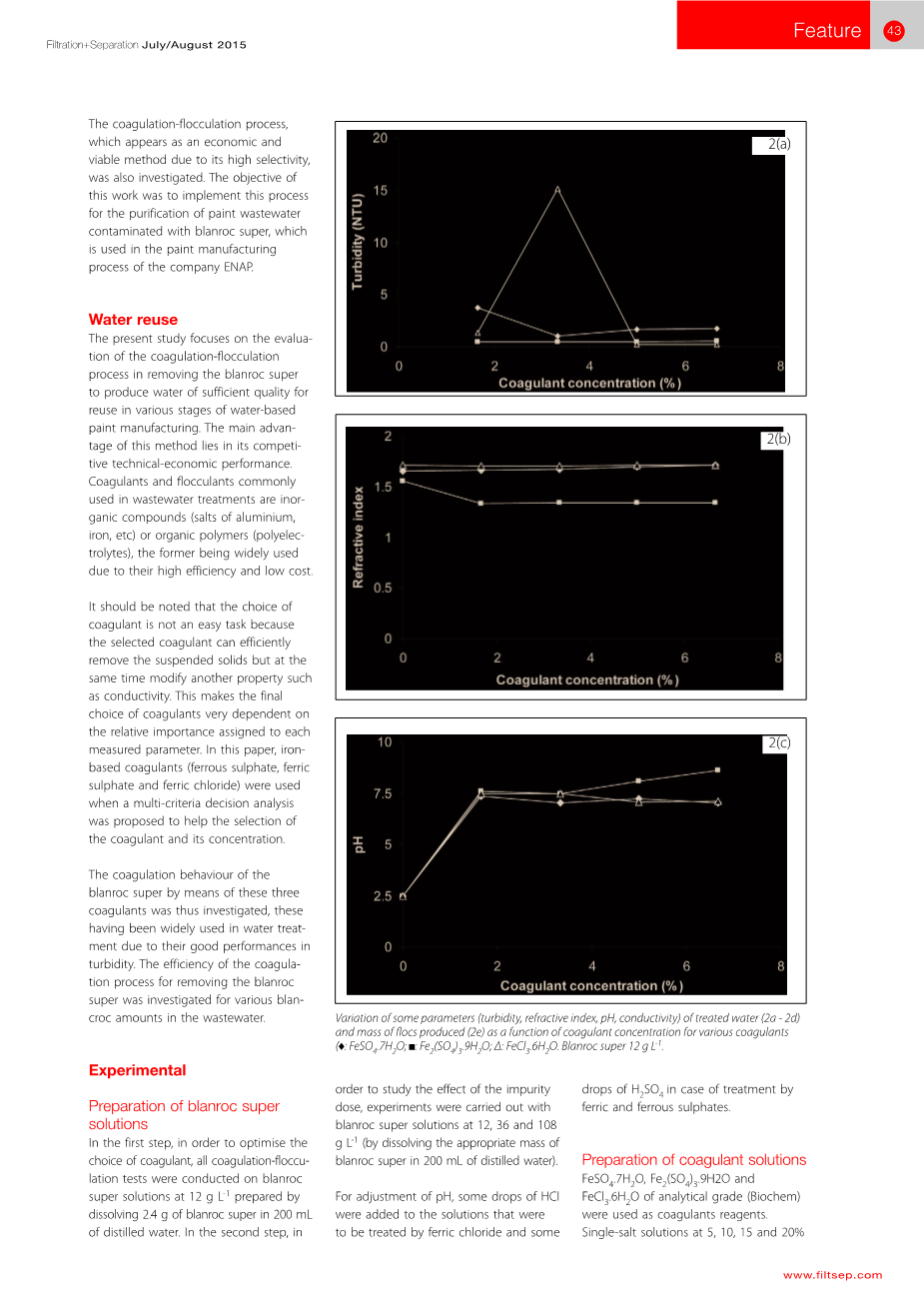 本研究重点在于评估混凝—絮凝工艺去除超级钙,并得到足够质量的水,能够回用于水性漆生产过程的各个阶段。这种方法的主要优点在于它具有竞争性的技术经济性能。用于污水处理的絮凝剂和混凝剂通常是无机化合物(铝盐、铁盐等)或者有机聚合物(聚电解质),前者由于其效率高且成本低,因此得到广泛使用。