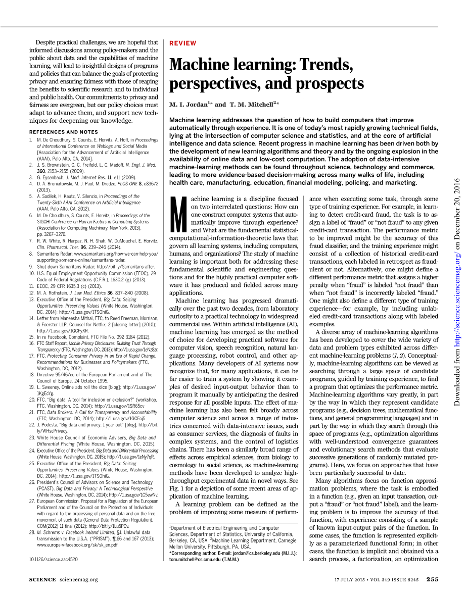 M. I. Jordan 1 *和T. M. Mitchell 2 *