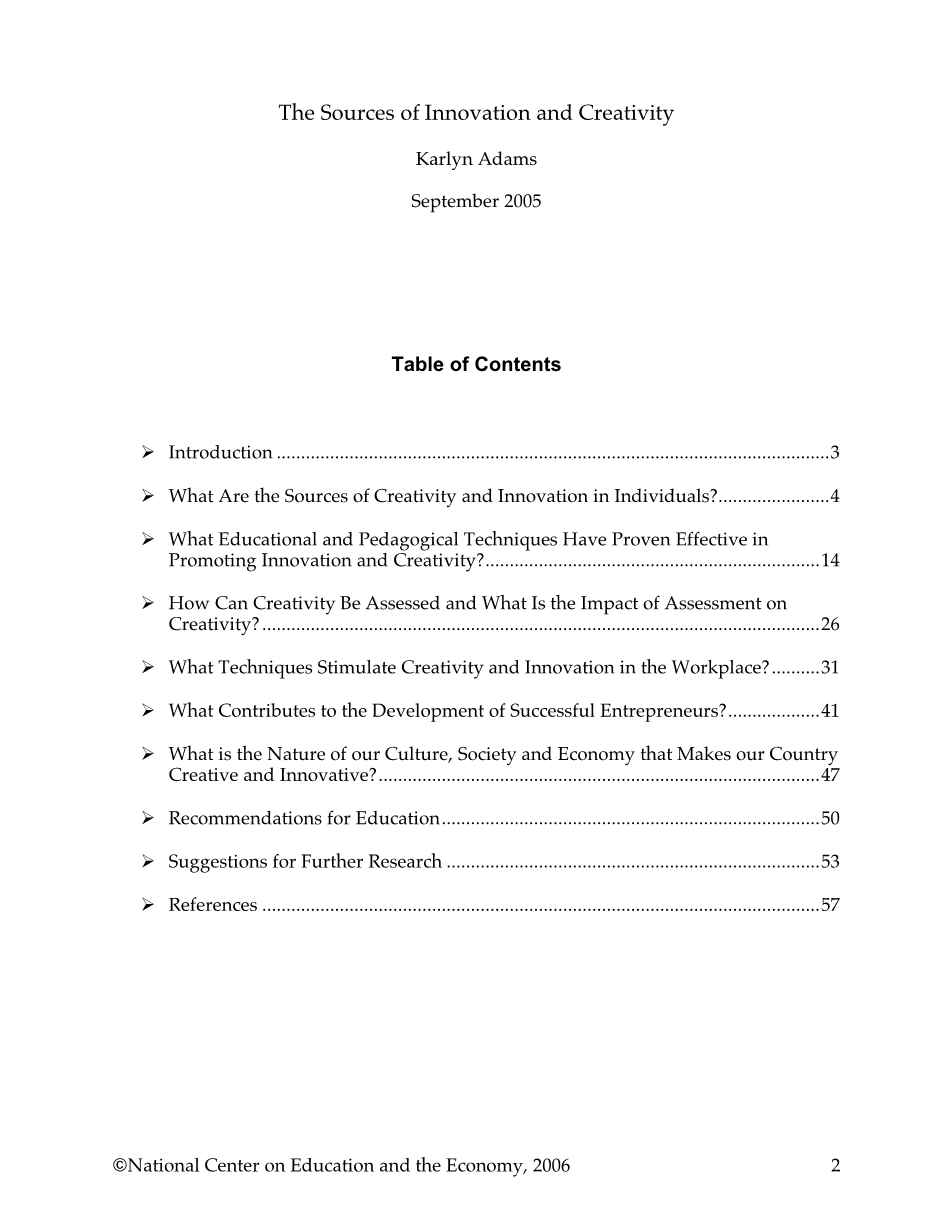 以下内容是对当前关于个人和团体创新和创造力的来源研究和理论的全面总结。基于现有文献中反复出现的概念,本文总结的一些建议是关于学生在最好的教育系统如何促进和提高这些属性。所有的研究和建议都是关于在新的全球经济的背景下进行员工劳动力发展的问题,并对以下关键问题进行了讨论: