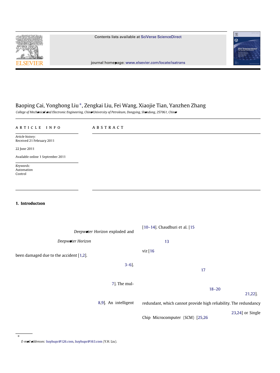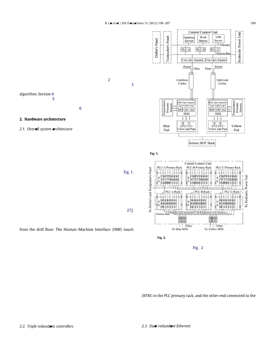 这项工作的重点是通过使用硬件冗余技术,软件冗余技术和一系列投票算法设计的海底防喷器组的极高的可靠性。本文结构如下。第2节描述了海底BOP控制系统的硬件结构。 第3节描述了三模块冗余输入和输出投票算法。 第4节描述了控制系统的软件方法。在第5节,在实验室进行了海底BOP操作的一系列实验,并给出了结果和讨论。第6节总结了论文。