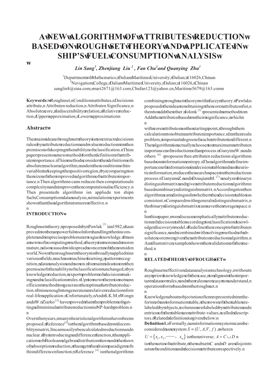 基于粗糙集理论的一种新的属性约简算法应用于船舶燃油消耗分析