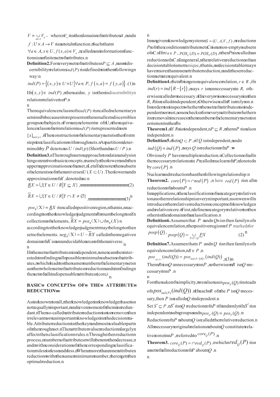 V=, 其中是属性a的域,并且f:U是一个总函数。称为信息函数,是一组有限的属性。