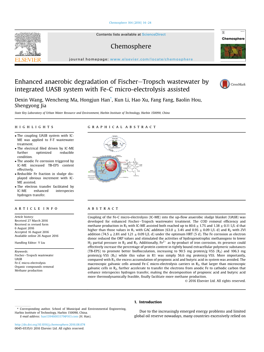 提高了铁碳微电解辅助集成系统费舍尔—特废水UASB厌氧降解外文翻译资料